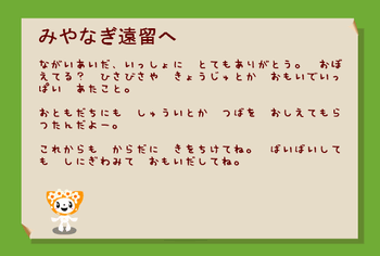 あーでも、「からだにきをちけてね」とか微妙にカタコト気味なのがまたほろりですよ。